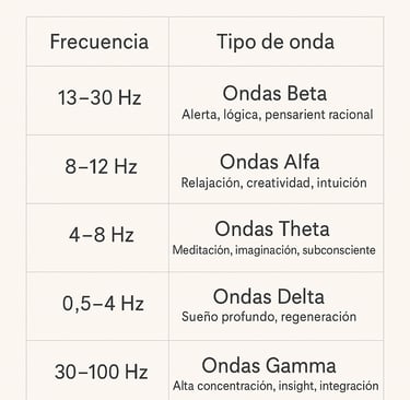Tabla de ondas cerebrales y sus estados