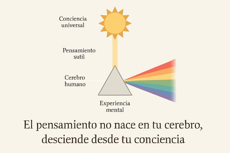 En este modelo, el pensamiento no se crea dentro de ti. Llega a ti desde ese campo. Tu mente lo traduce, lo interpreta, lo convierte en palabras o imágenes.